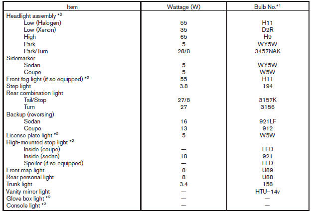 All other lights are either type A, B, C or D. When replacing a bulb, first remove the lens, light and/or cover.